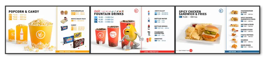 One common mistake that we see frequently: using too much motion. Motion should be a critical component of your on-screen signage presentation, but it should be used strategically. Your digital menu screens should leverage motion specifically to highlight high-margin sales, bundles, and combos. It is wise to avoid multiple aspects of your designs moving at the same time on multi-screen boards. Seek to establish a comfortable rhythm so that customers can focus on the value your signage is trying to convey. Too much movement on your signage can frustrate your customers and create a disjointed, cluttered viewing experience that is likely to be reflected in a lower purchase amount at the register.